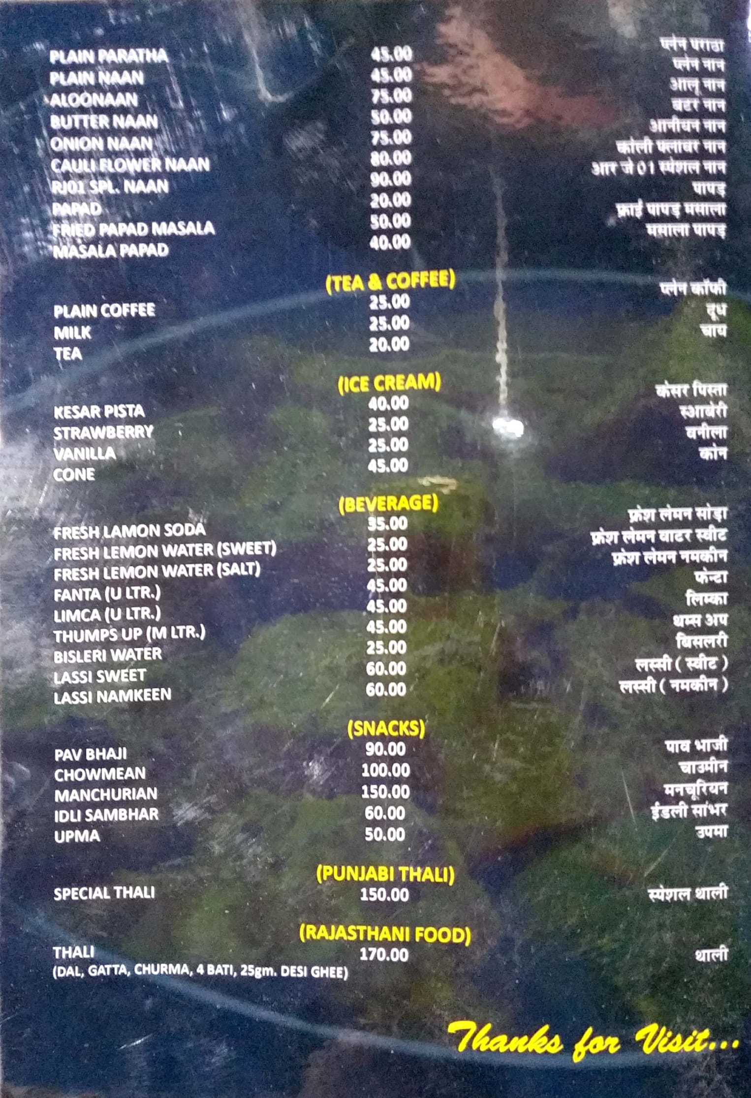 RJ-01 Pure Veg. Menu